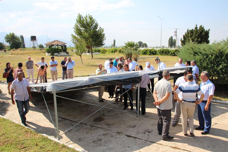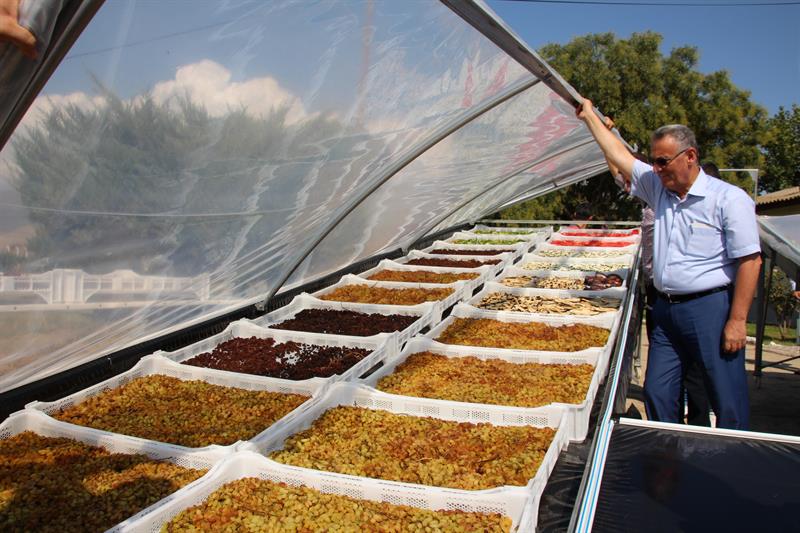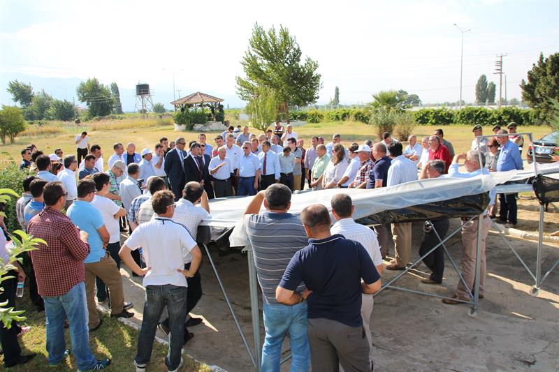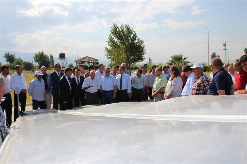 Özellikle Manisa genelinde üretimi yaygın olan üzüm ve domates gibi sebze ve meyvelerin kurutma süresini kısaltmak, kalite ve hijyen koşullarını iyileştirmek amacıyla geliştirilen kurutma sisteminin tanıtım ve demonstrasyon çalışmasına Manisa Valisi Erdoğan Bektaş, Manisa Gıda Tarım ve Hayvancılık İl Müdürü Hasan Çebi, Alaşehir Kaymakamı Osman Bilgin, Alaşehir Belediye Başkanı Dr. Gökhan Karaçoban, Alaşehir Ticaret ve Sanayi Odası Başkanı Mustafa Seyhan, Manisa Bağcılık Araştırma Enstitüsü Müdür Vekili Mustafa Sacit İnan, Bitkisel Üretim ve Bitki Sağlığı Şube Müdürü İzzet Atsız, Alaşehir, Akhisar, Gölmarmara, Kula, Salihli, Sarıgöl İlçe Gıda Tarım ve Hayvancılık Müdürleri, Alaşehir Ticaret Borsası ve Ziraat Odasının temsilcileri, konu uzmanı teknik personeller ile çok sayıda üretici katıldı.